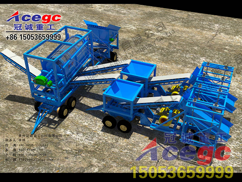 選沙金礦機械設(shè)備-每日每小時200噸處理量組合式風(fēng)選移動淘金車方案