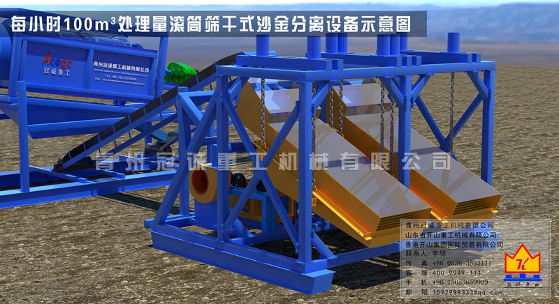 每小時(shí)100m3處理量滾筒篩干式沙金分離設(shè)備配置